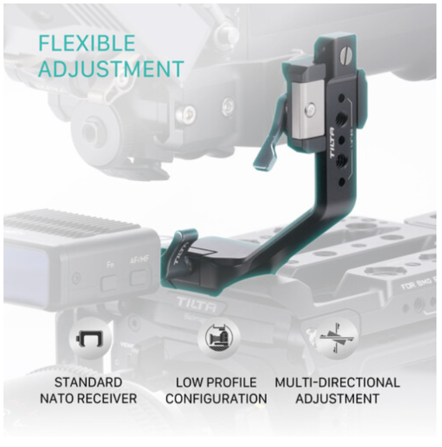 El adaptador para empuñadura superior TGA-FPG-THA de Tilt es un accesorio de fabricación precisa diseñado específicamente para el DJI Focus Pro Grip, que permite a los usuarios fijar de forma rápida y segura cualquier empuñadura superior o accesorio compatible con el sistema NATO. Está fabricado en una aleación de aluminio ligera pero resistente con un acabado anodizado en negro y cuenta con un riel NATO integrado con pasadores de seguridad y dos puntos de montaje antirrotación con rosca de 1/4"-20 para accesorios adicionales, lo que lo convierte en una mejora imprescindible para un control ergonómico y mayores opciones de fijación del sistema DJI Focus Pro.