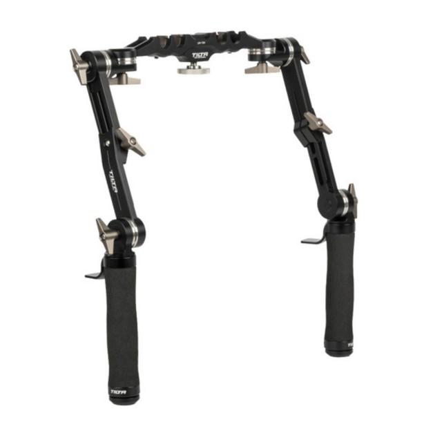 Este sistema universal de empuñadura Pro Handgrip System de Tilta se fija directamente a los tubos de tu equipo de cámara, lo que permite pasar rápidamente de un montaje en el hombro a otro tipo de sujeción de la cámara y viceversa. Fije el puente a las barras y asegúrelo con el tornillo de apriete integrado. Este sistema ofrece puntos de montaje para barras LWS de 15 mm y barras de estudio de 19 mm. Este diseño a presión garantiza que no tenga que retirar los accesorios ya fijados a las barras.
