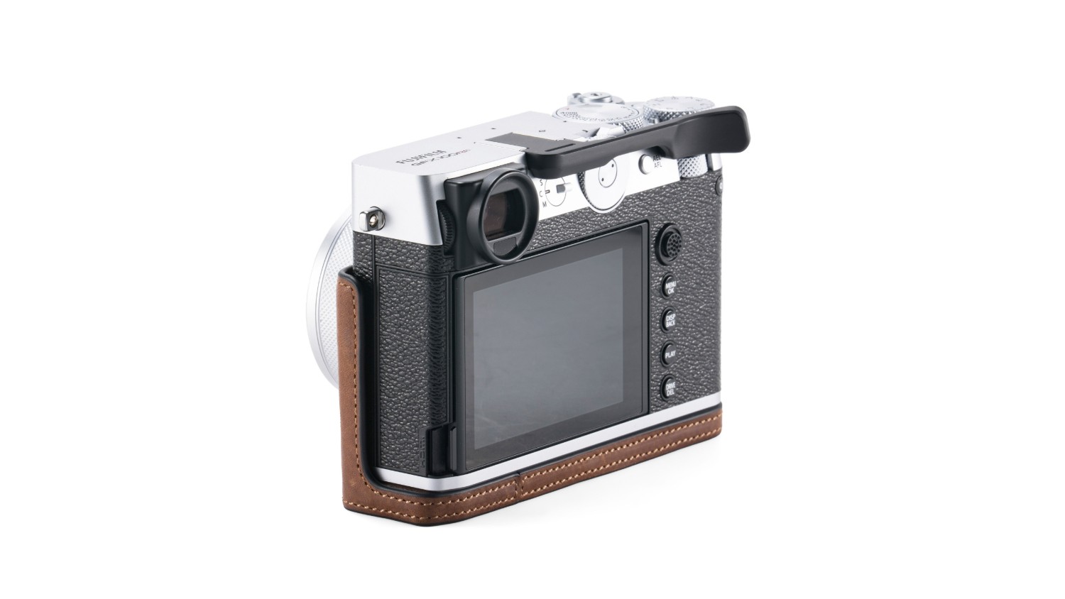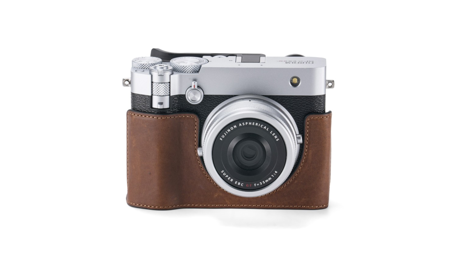 Este kit incluye una funda de cuero para la cámara Fujifilm GFX100RF, que se fija mediante un tornillo de 1/4″-20 y ofrece a los usuarios una forma más cómoda de controlar y manejar el cuerpo de la cámara gracias a su asa integrada.