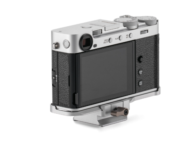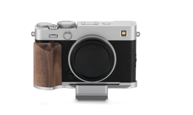 El kit de base para jaula de cámara Tilta TA-T91-A-S Vintage es una ligera consola en forma de L fabricada en aluminio plateado y madera de nogal, con un ergonómico mango de madera, diseñada específicamente para la cámara Fujifilm X-E5. Ofrece mayor comodidad al sujetarla con la mano y es compatible con el sistema de fijación rápida Arca-Swiss para una fijación sencilla a gimbals y trípodes, al tiempo que conserva el aspecto retro y compacto de la cámara.