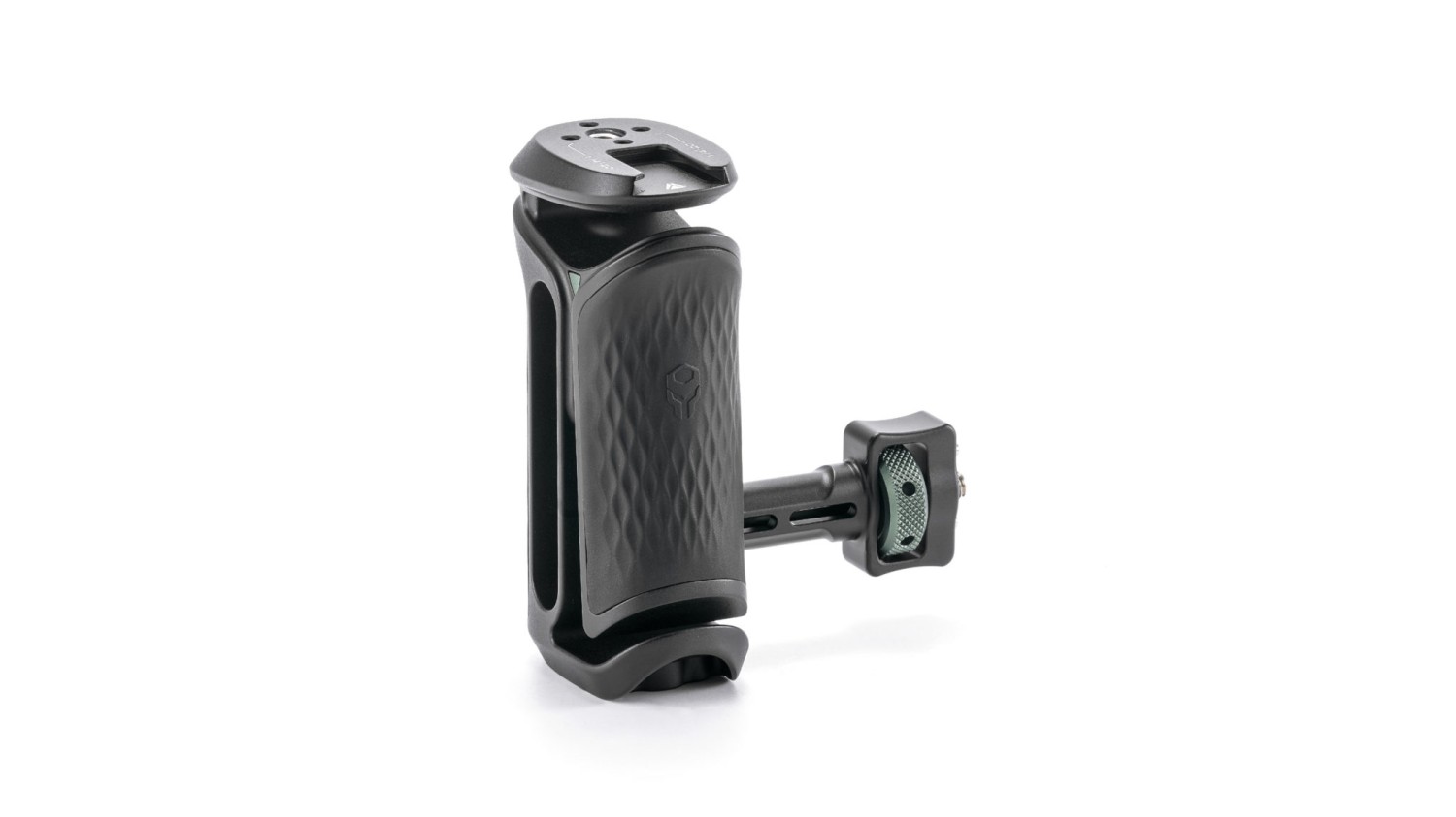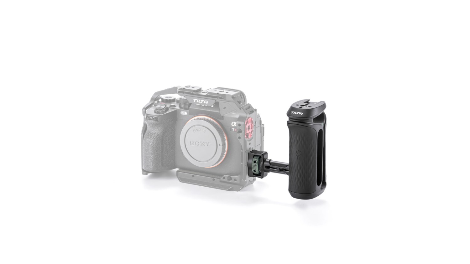 Esta versión incluye un sistema de fijación mediante un tornillo de 1/4″-20 con pasadores de posicionamiento para poder fijar la empuñadura a la jaula de la cámara. Esto crea una unión increíblemente segura y, al mismo tiempo, limita la rotación.