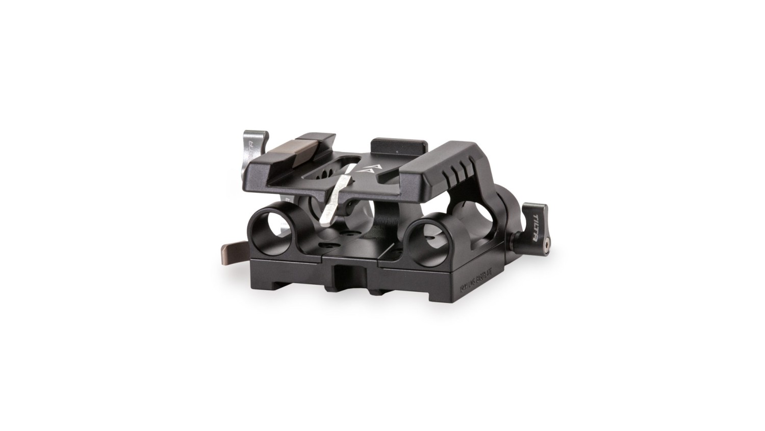 Esta placa base LWS de 15 mm se fija a la base de la jaula completa de las cámaras RED Komodo, Sony FX3 y Panasonic BGH1.