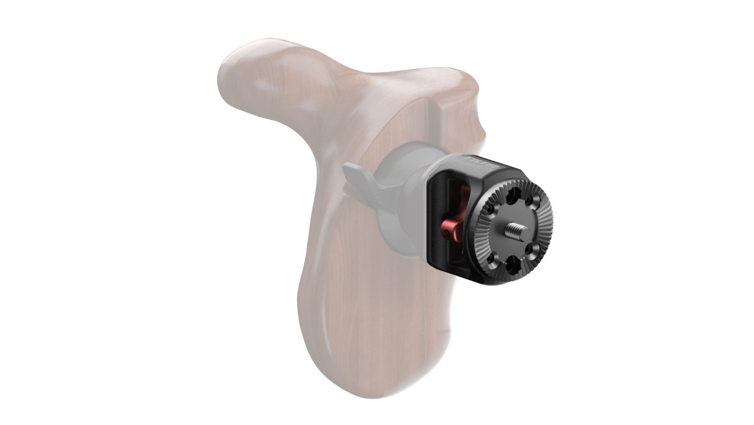 Este accesorio lateral permite acoplar empuñaduras laterales avanzadas de madera, tanto a la derecha como a la izquierda, mediante la conexión de rosca ARRI.