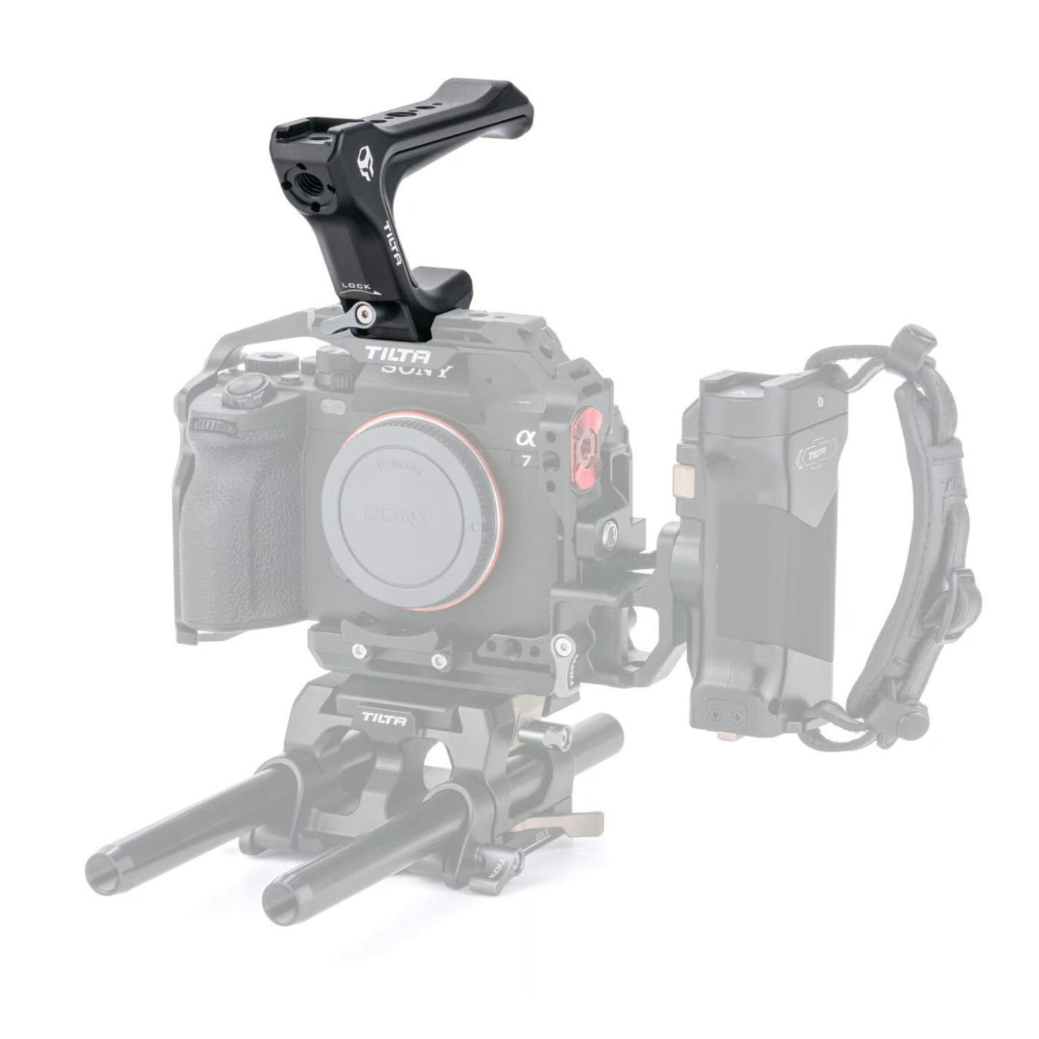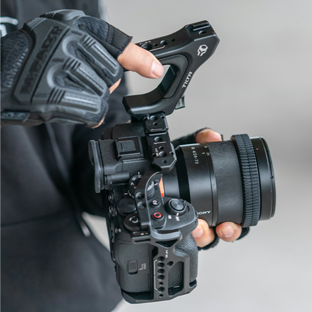 Esta empuñadura superior se fija de forma fácil y segura a la parte superior del chasis completo de la cámara Sony a7 IV.