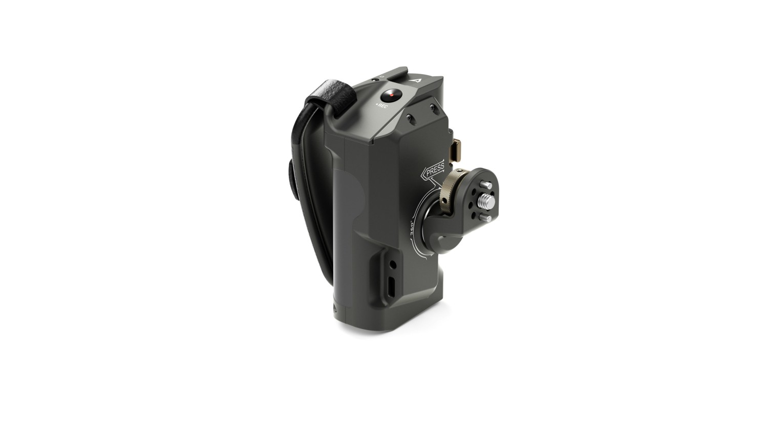 Esta empuñadura avanzada se fija en el lado izquierdo de la jaula de la cámara Tiltaing. El puerto para la batería situado en la parte inferior de la empuñadura permite utilizar una batería Sony F570 para alimentar diversos accesorios a través de las salidas USB-C de 8 V y CC de 12 V.