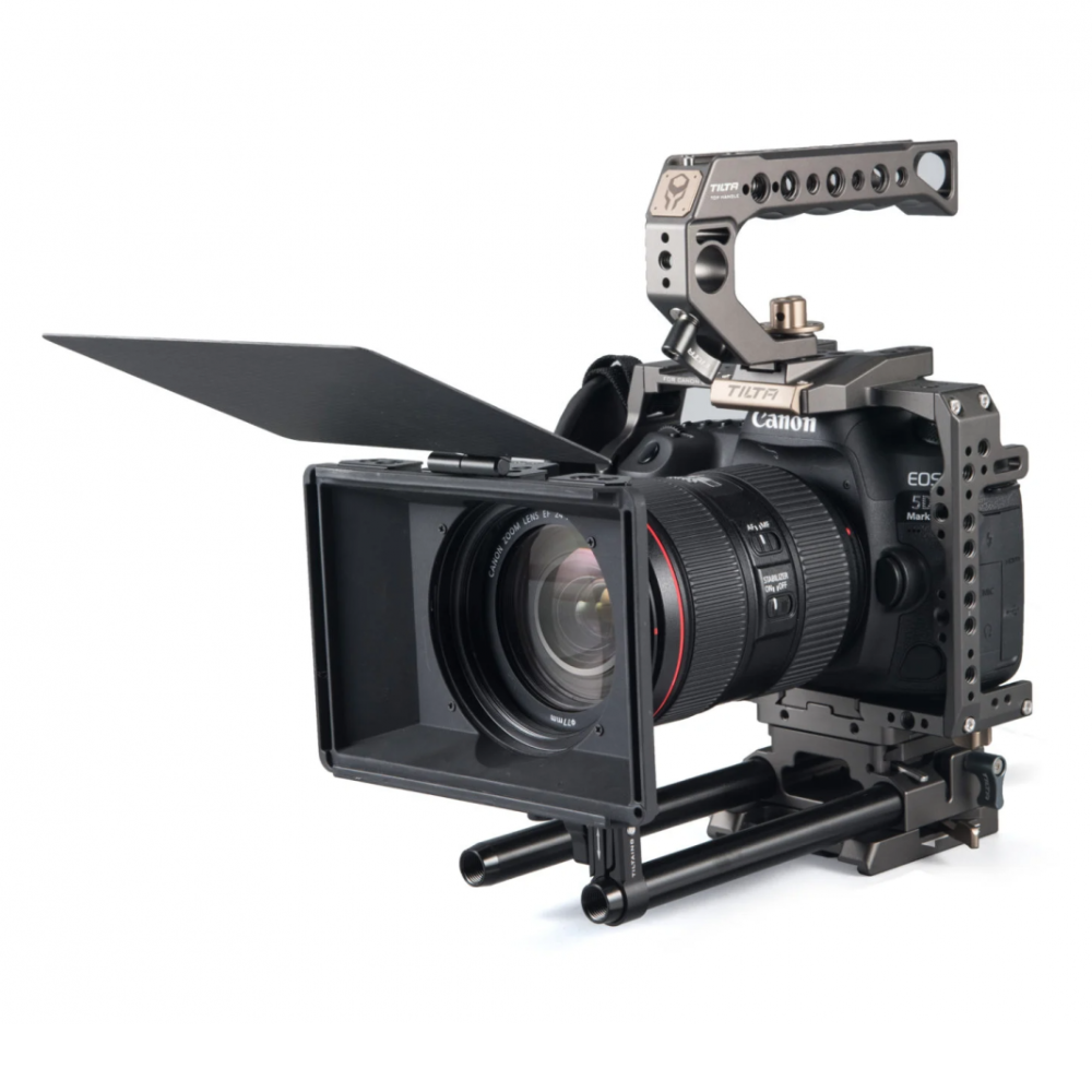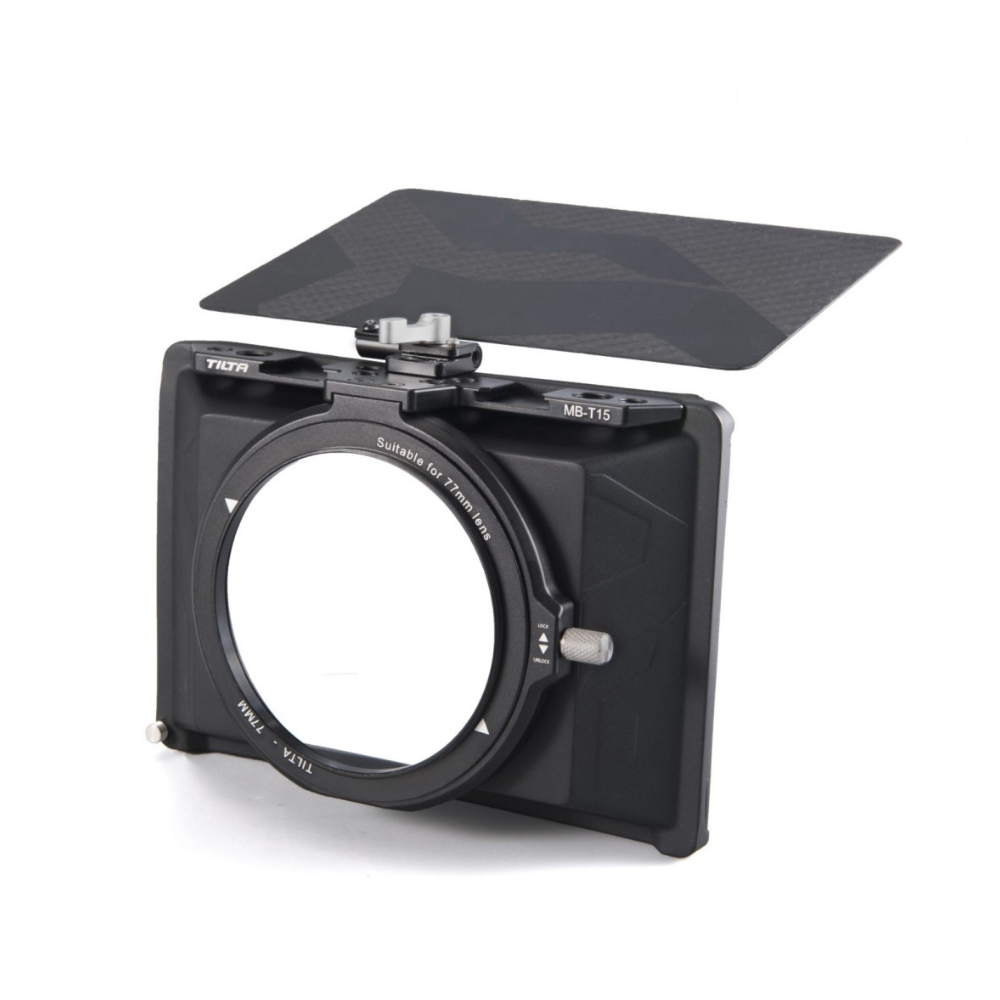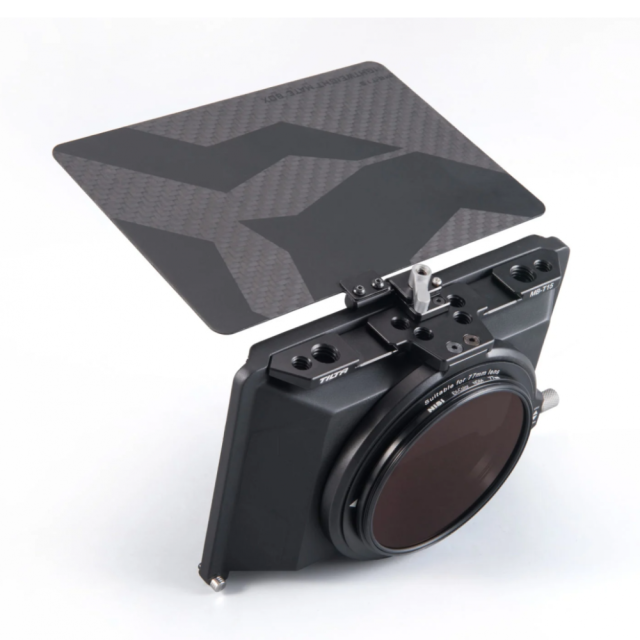 Otra ventaja de este matte box son las dos opciones de filtro. En la parte frontal del matte box hay una ranura para cualquier filtro estándar de 4 × 5,65. Los filtros roscados se pueden acoplar a los anillos adaptadores mediante roscas internas que se ajustan al diámetro de cada anillo adaptador. El anillo adaptador se fija al objetivo, se coloca el matte box y, a continuación, se utiliza el filtro roscado. El kit incluye un mini matte box, una bandera francesa y cuatro anillos adaptadores (82 mm, 77 mm, 67 mm y 72 mm). También ofrecemos otros anillos adaptadores en tamaños no estándar (52 mm, 55 mm, 58 mm, 62 mm, 85 mm), así como anillos adaptadores en versión para película de cine (80 mm y 85 mm).