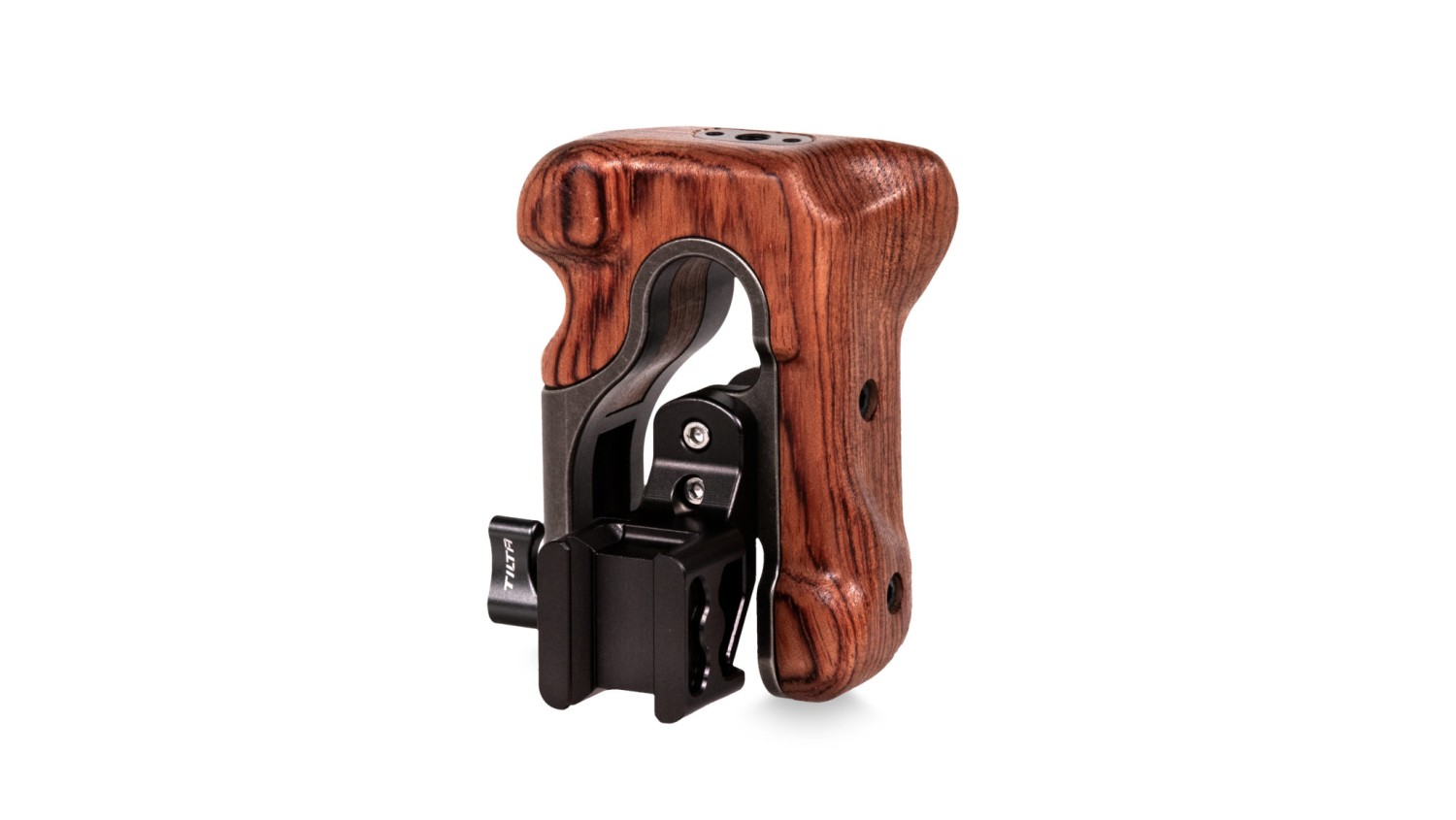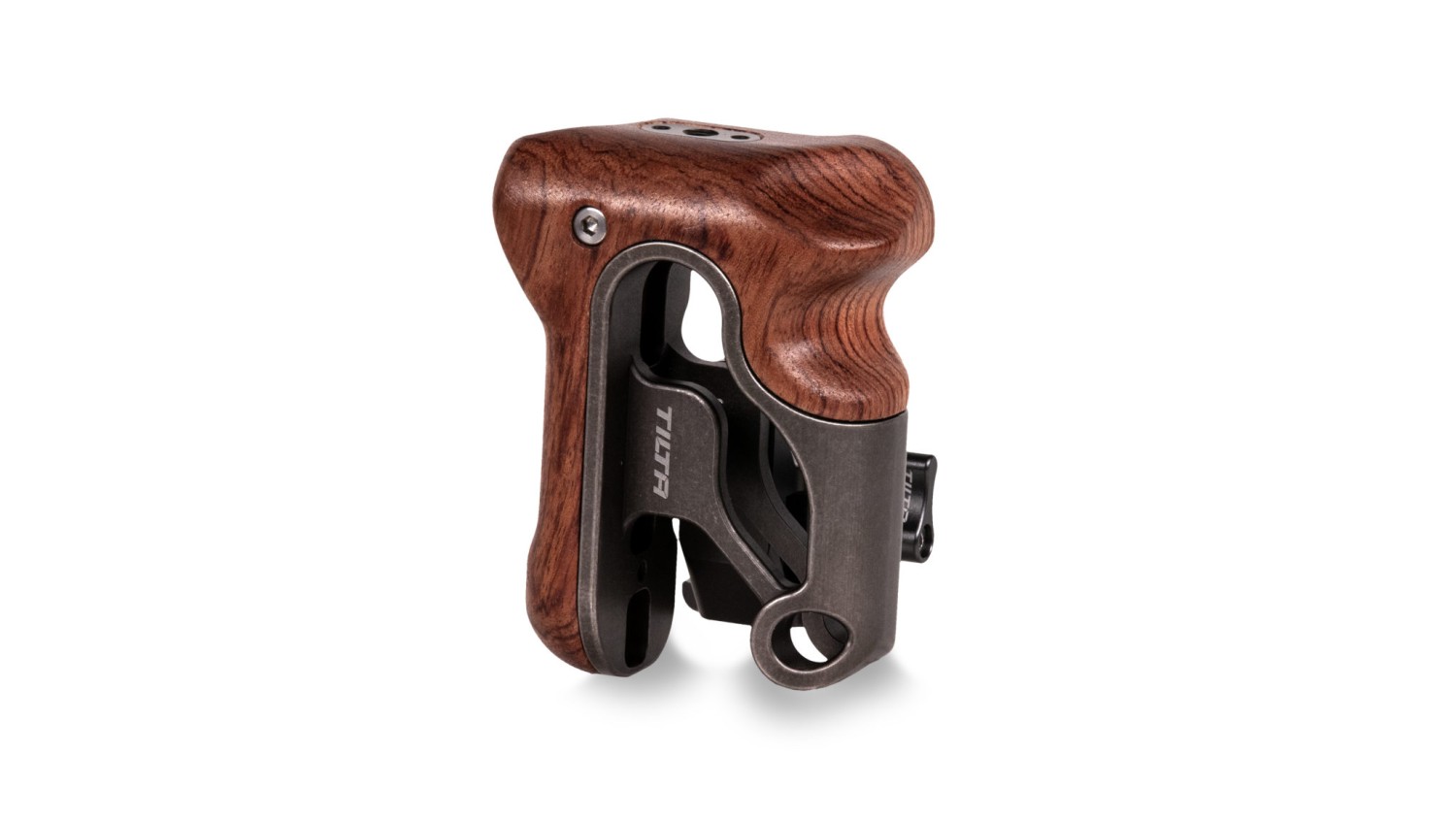Esta empuñadura se fija en el lado derecho de la jaula de la cámara Tiltaing. Su diseño ergonómico proporciona la máxima comodidad al manejar la cámara.