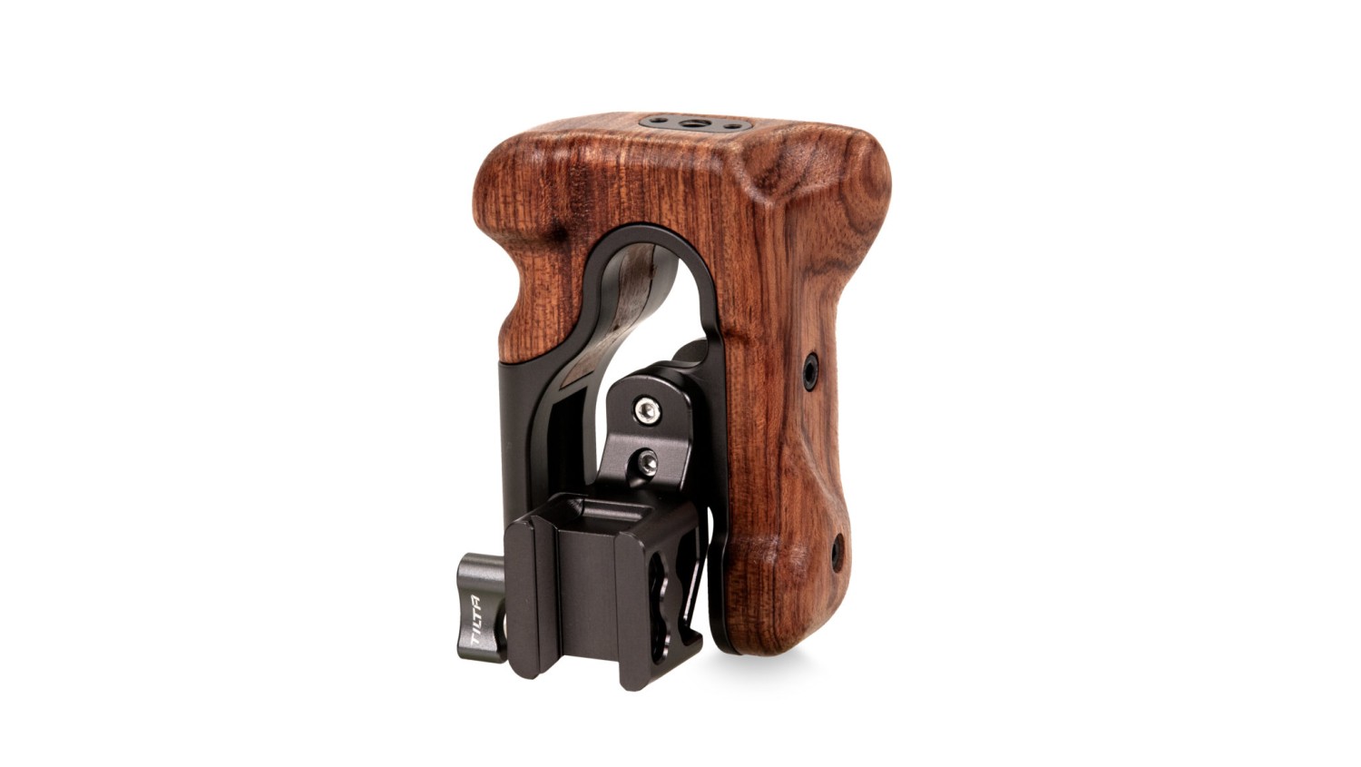 Esta empuñadura se fija en el lado derecho de la jaula de la cámara Tiltaing. Su diseño ergonómico proporciona la máxima comodidad al manejar la cámara.