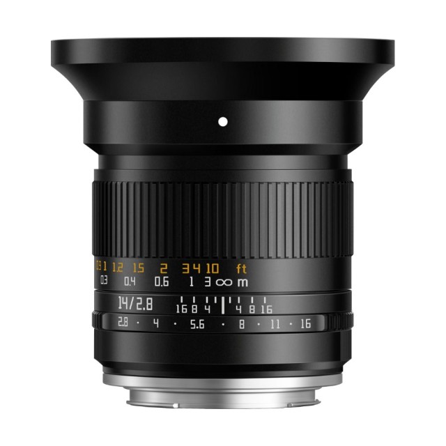 El diámetro del filtro del objetivo es de 77 mm y el ángulo de visión alcanza los 114°. La construcción óptica consta de 13 elementos distribuidos en 10 grupos. El peso del objetivo TTArtisan MF-FF14mm F2.8 oscila aproximadamente entre 437 y 445 gramos.