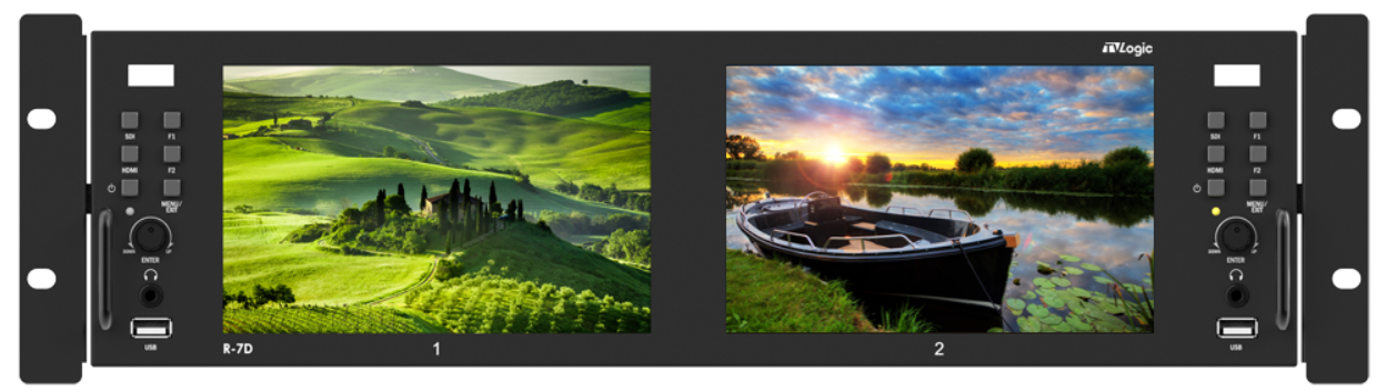 El TVLogic TVL-R-7D, diseñado para exigentes flujos de trabajo de emisión y producción, combina dos pantallas LCD Full HD de 7 pulgadas en un diseño compacto para montaje en rack. Este monitor está equipado con entradas y salidas universales 12G/6G/3G-SDI y admite señales 4K de alto ancho de banda y conmutación fluida entre formatos. El R-7D ofrece emulación HDR avanzada, incluyendo PQ, HLG y S-Log3, lo que permite una visualización precisa del contenido HDR en tiempo real.