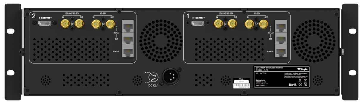 1 × monitor dual de 7” TVLogic TVL-R-7D para montaje en rack