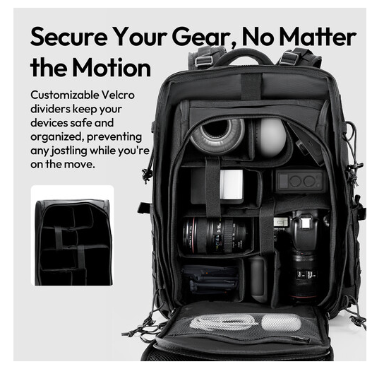 La mochila táctica Ulanzi B172 BC007 (28 l) está diseñada para satisfacer las necesidades de fotógrafos y viajeros que necesitan una solución de transporte resistente, funcional y cómoda. La mochila está diseñada para albergar una cámara réflex digital o sin espejo, varios objetivos y accesorios, e incluye un compartimento extraíble para la cámara con separadores ajustables que permiten una organización personalizada. El exterior de poliéster resistente a la intemperie y las cremalleras resistentes a las salpicaduras ayudan a proteger tu equipo de las inclemencias del tiempo. Para mayor comodidad, la mochila cuenta con correas acolchadas para los hombros, una correa pectoral con silbato de seguridad y un cinturón lumbar extraíble con bolsillos de almacenamiento, lo que la hace ideal para largas excursiones o para desplazarse por la ciudad.