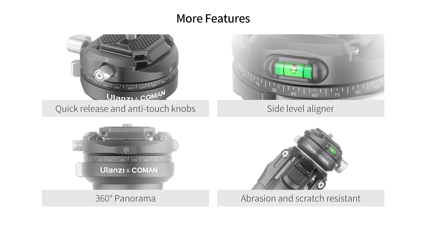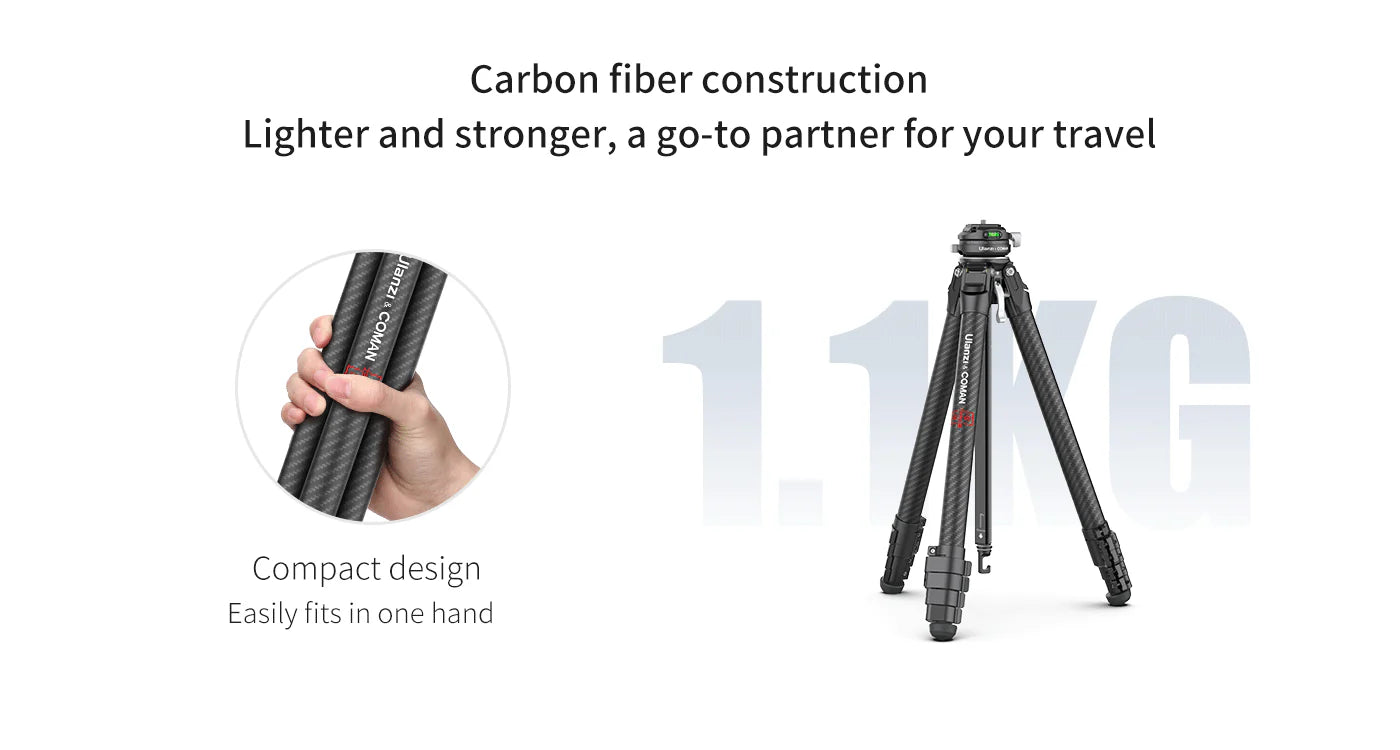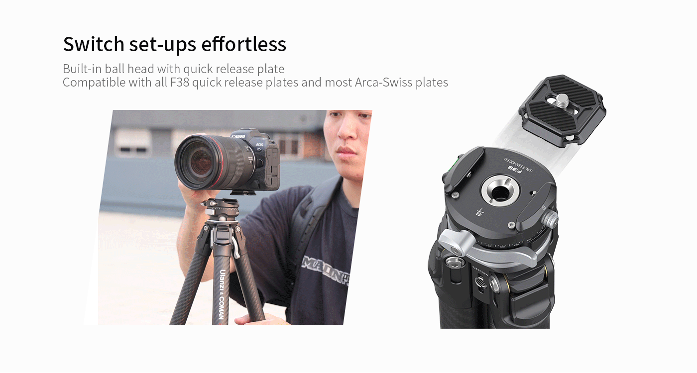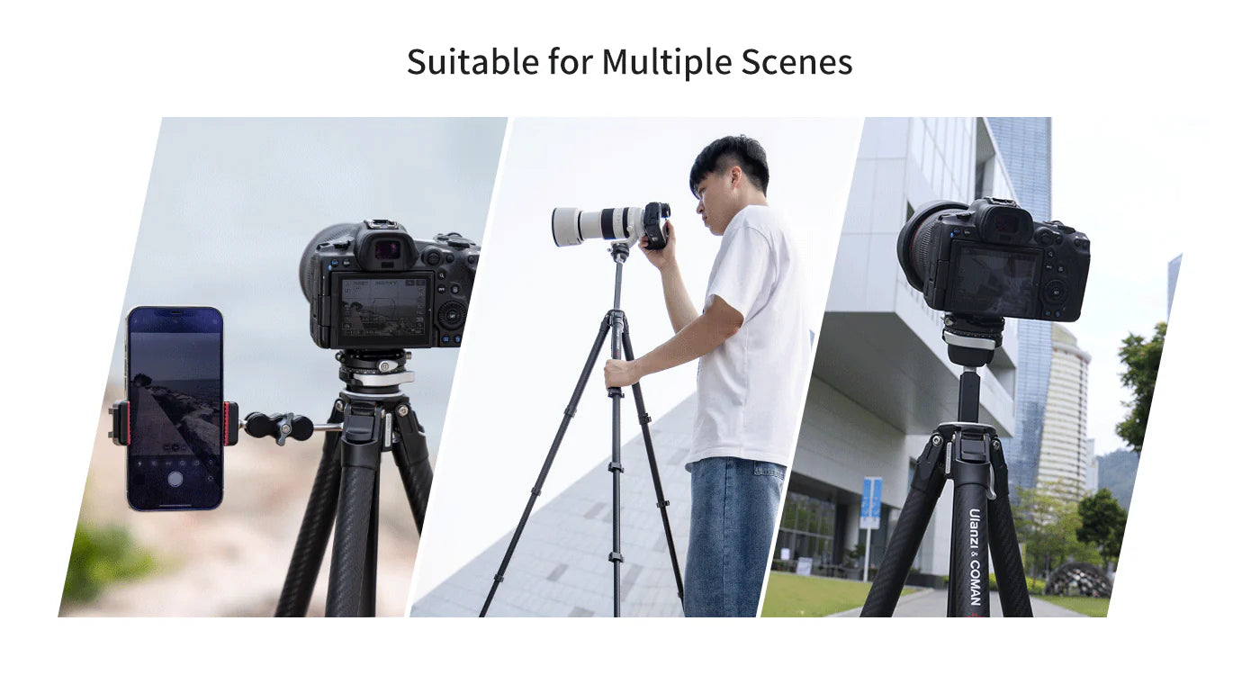 Trípode de viaje de montaje rápido Ulanzi Zero F38: Captura imágenes increíbles durante tus viajes con este trípode de viaje compacto y ligero (1,1 kg) fabricado en fibra de carbono. Gracias a la rótula integrada y a la placa de fijación rápida F38, puedes cambiar fácilmente entre diferentes configuraciones, mientras que la columna central adicional incluida ofrece compatibilidad con Arca-Swiss para una flexibilidad máxima. Fotografía desde diferentes ángulos gracias a las posiciones ajustables de las patas (20°/55°/75°) y al poste corto extraíble para tomas desde ángulos bajos. El trípode Ulanzi Zero F38 está fabricado para durar, soporta hasta 18 kg y todas sus piezas son reparables con garantía de por vida. ¡Da rienda suelta a tu creatividad y captura momentos inolvidables, estés donde estés!