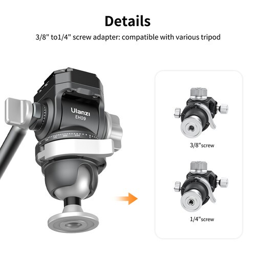 La rótula invertidaUlanzi EH09 Ballhead Arca es una rótula compacta pero muy funcional, diseñada tanto para fotógrafos profesionales como aficionados. Con una inclinación vertical de 118° y un giro completo de 360°, permite un encuadre preciso y transiciones fluidas entre tomas horizontales y verticales. Dos niveles de burbuja integrados en la base y en el lateral garantizan una alineación precisa para obtener resultados uniformes. La innovadora empuñadura extraíble sirve también como destornillador con siete puntas intercambiables, lo que permite realizar ajustes directamente sobre el terreno. El EH09 es compatible con placas de fijación rápida tipo Arca y trípodes con adaptador de rosca de 3/8" a 1/4", y combina una gran portabilidad (460 g / 1 lb) con una construcción resistente. Gracias a su base plana, su amplio rango de inclinación y sus herramientas de nivelación integradas, es ideal para montajes de estudio, fotografía de mesa o equipos fotográficos móviles.