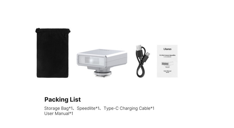 El flash F12 se alimenta mediante una batería recargable integrada con una capacidad de 1200 mAh, admite la carga a través de USB-C y puede alimentarse mediante baterías externas compatibles para un uso prolongado. La carga completa tarda aproximadamente 2,5 horas. Gracias a su soporte universal para zapata, el flash F12 es compatible con las principales marcas de cámaras, incluyendo Canon, Nikon, Olympus, Panasonic y Sony, por lo que es adecuado tanto para cámaras digitales como analógicas.