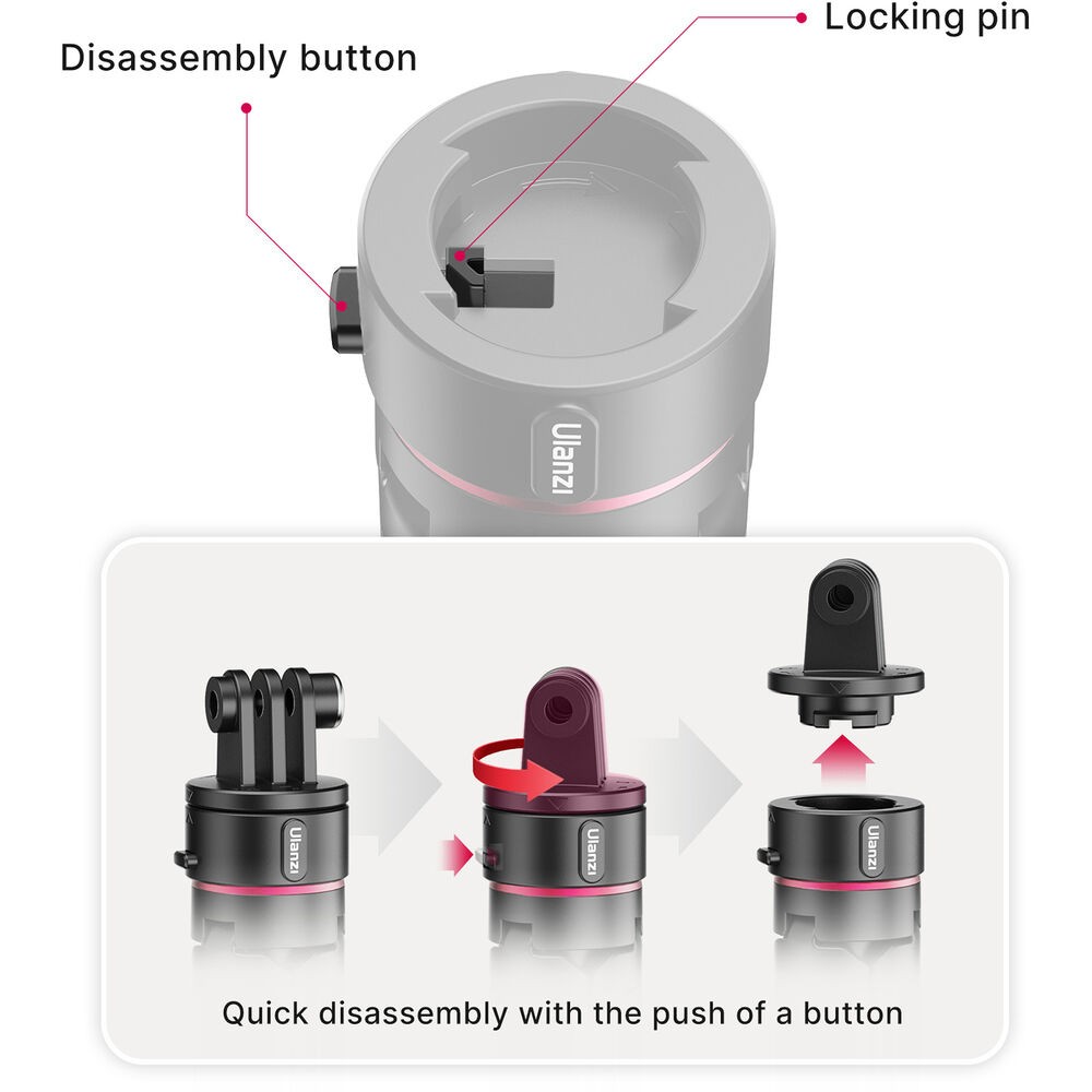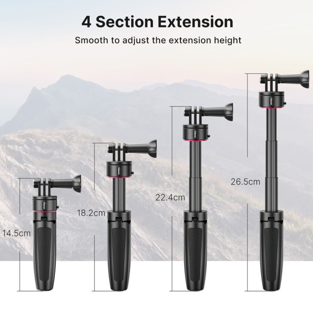 El trípode para cámaras de acción Ulanzi Go-Quick II es un minitrípodecompacto 2 en 1 y un palo selfie diseñado específicamente para cámaras de acción. Gracias a su sistema magnético de fijación rápida y a su barra extensible integrada, ofrece un montaje rápido, portabilidad y ángulos de grabación versátiles para los creadores que viajan con frecuencia.