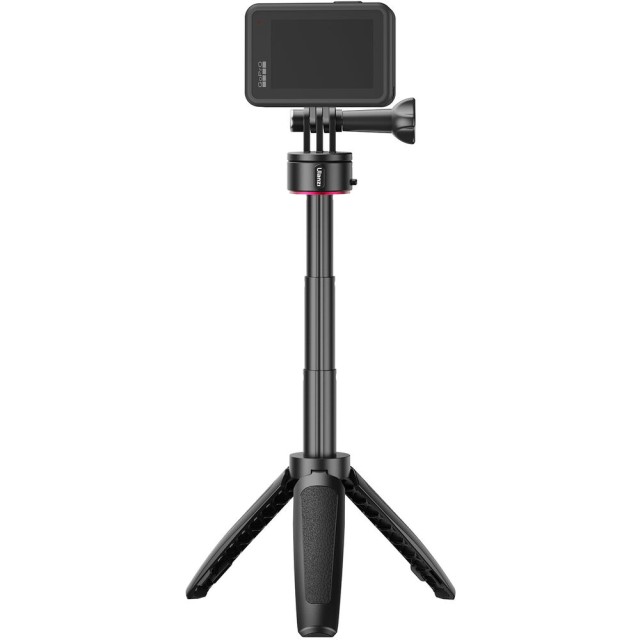 El minitrípode Ulanzi Go-Quick II 2 en 1 es una solución inteligente y ligera para los usuarios de cámaras de acción que necesitan rapidez y flexibilidad. Está diseñado para funcionar a la perfección con cámaras de acción GoPro, DJI e Insta360. Utiliza un sistema de bloqueo magnético de liberación rápida con fijación de dos puntos para una sujeción rápida y segura sin necesidad de manipular tornillos. Las tres patas articuladas del trípode proporcionan un soporte estable sobre una mesa, mientras que la barra extensible de 4 secciones integrada se extiende de 5,7 a 10,4 pulgadas, lo que permite utilizarlo como un palo selfie compacto o como asa de mano. El Go-Quick II está fabricado en plástico ABS resistente y aluminio, y gracias a su peso de tan solo 96 g es fácil de transportar, lo que lo hace ideal para viajar, hacer vlogs, practicar deporte y grabar la acción del día a día.