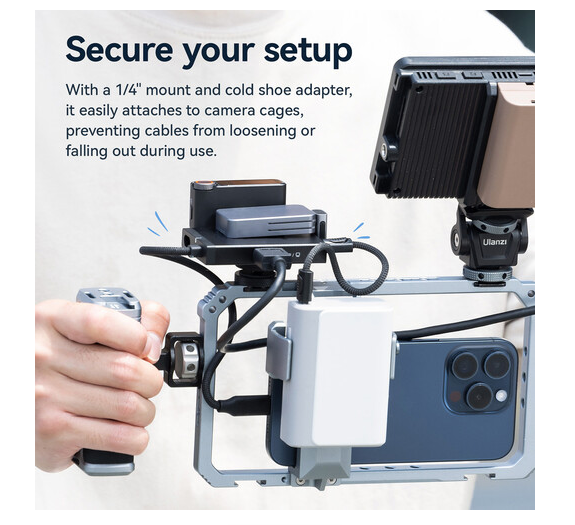 El concentrador Ulanzi M033 H1 4 en 1 USB-C Media Hub amplía las posibilidades de tu sistema y proporciona los puertos necesarios para la transferencia de datos a alta velocidad, la salida de vídeo y la recarga. Este concentrador compacto se conecta al dispositivo host mediante un cable trenzado USB-C 3.2 Gen 2 integrado y ofrece velocidades de hasta 10 Gb/s. Incluye dos puertos USB-C 3.2 Gen 2 para una rápida transferencia de datos, un puerto HDMI 2.0 compatible con vídeo 4K a 60 Hz para una transmisión y visualización de alta calidad, y un puerto USB-C Power Delivery 3.0 para alimentar dispositivos mientras se viaja. Además, la rosca interna de 1/4"-20, en combinación con el adaptador incluido para montaje en flash frío, permite fijar de forma segura el concentrador a la carcasa de la cámara, lo que garantiza que los cables permanezcan conectados durante el uso. Este concentrador es compatible con una amplia gama de dispositivos, incluidos smartphones, tabletas, ordenadores y cámaras, y es ideal para creadores de contenido, streamers y profesionales que necesitan una conexión fiable en un formato portátil.