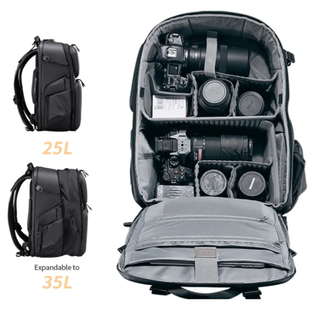 Capacidad de 35 l (ampliable a 40 l), ideal para hasta 2 cámaras, 6 objetivos y accesorios para drones