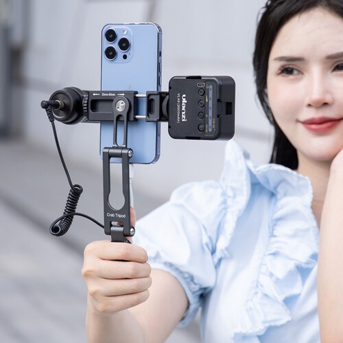 El trípode multifuncional Ulanzi HP004 Crab es un accesorio versátil diseñado para smartphones con un ancho de entre 2,36 y 3,74 pulgadas. Gracias a su diseño plegable y portátil, es ideal para vlogs, retransmisiones en directo, videollamadas y fotografía móvil durante los viajes. La doble función del trípode permite utilizarlo como soporte de mesa estable cuando las patas están extendidas, o como soporte de mano cuando están plegadas.