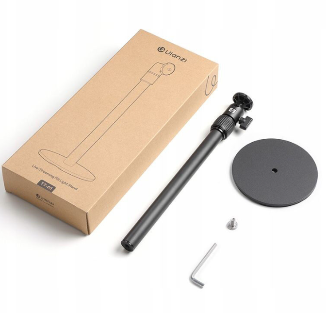 El soporte para lámpara Ulanzi T147 K6500 es un soporte de mesa compacto y resistente diseñado para luces LED y pequeños accesorios. Gracias a su base redonda estable y a su varilla vertical con fijación ajustable, es ideal para retransmisiones en directo, grabaciones de vídeo, fotografía y montajes de mesa en los que se necesita un soporte de iluminación fiable.
