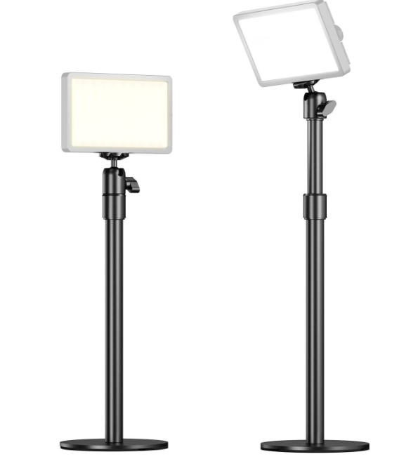 El soporte para lámpara Ulanzi T147 K6500 es una solución práctica y que ahorra espacio para montar paneles LED y accesorios de iluminación compactos en mesas o puestos de trabajo. Gracias a su diseño vertical, con una altura de aproximadamente 55 cm, y a su base estable de 13 cm de diámetro, ofrece un soporte fiable y, al mismo tiempo, ocupa un espacio mínimo. El soporte es ideal para retransmisiones en directo, videoconferencias, fotografía de productos y creación de contenido. Su estructura robusta garantiza la estabilidad durante su uso, mientras que el punto de fijación superior permite acoplar fácilmente luces LED compatibles o accesorios. El soporte para lámpara Ulanzi T147 K6500 es fácil de montar y se integra perfectamente en estudios domésticos o espacios de trabajo profesionales, y constituye un soporte de iluminación fiable para el trabajo creativo diario.