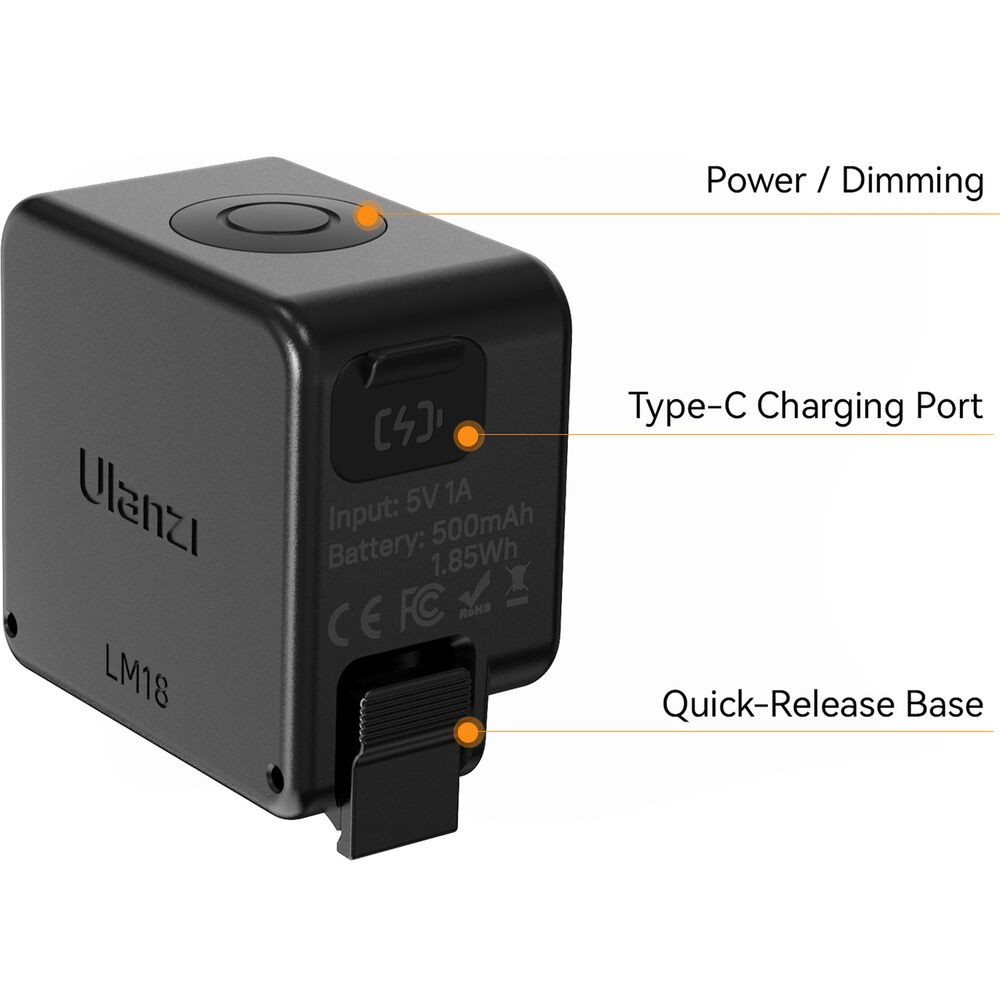 El LM18 se alimenta mediante una batería recargable integrada con una capacidad de 500 mAh y puede funcionar desde 1 hora a máxima luminosidad hasta 8 horas a potencia mínima. La luz es totalmente recargable a través de USB y se suministra con un cable de carga USB. Su diseño resistente y ligero cuenta con un grado de resistencia al agua IPX5 para su uso bajo la lluvia o en condiciones de humedad, mientras que el clip de montaje de fijación rápida de DJI permite una fácil fijación a las cámaras Osmo Action o Pocket. El LM18 es ideal para vloggers, creadores de contenido y fotógrafos de acción que buscan una luz adicional portátil y fiable.