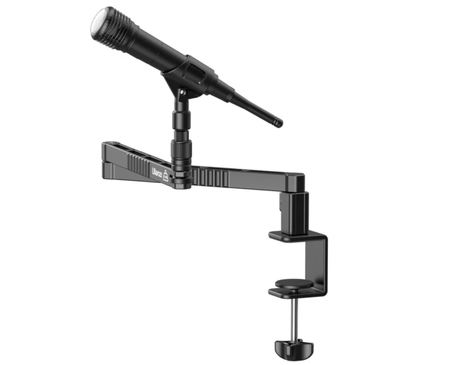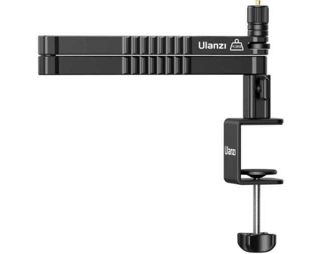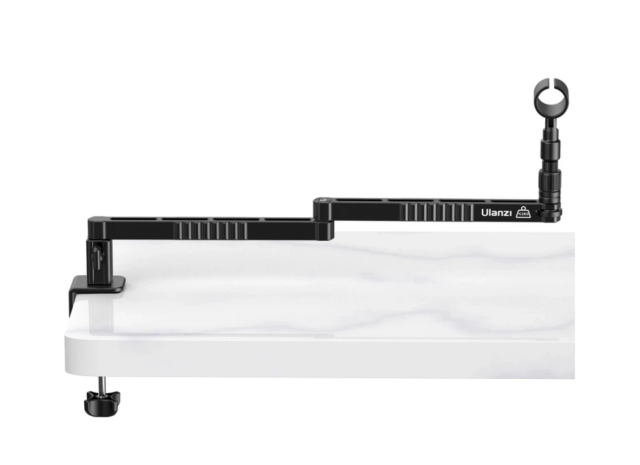 Brazo de aluminio de perfil bajo para micrófonos Ulanzi LS26. Ideal para fijarlo al borde de una mesa o un escritorio.