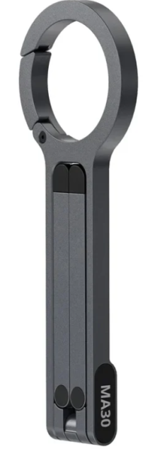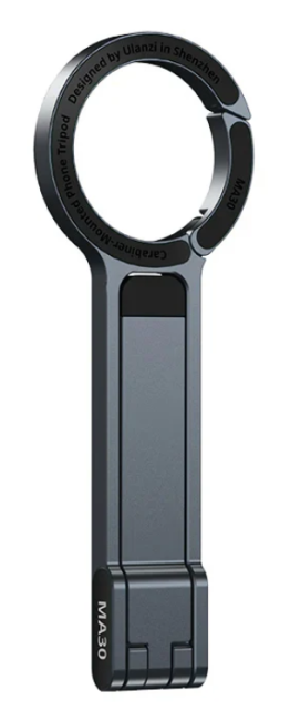 El trípode para teléfonos móviles Ulanzi M077 MA30, en color gris oscuro, aporta una nueva dimensión a la estabilización portátil de los smartphones gracias a su innovador diseño Fast Clip en forma de mosquetón, que permite fijarlo fácilmente a bolsos o cinturones y disfrutar así de un auténtico viaje con las manos libres. Este ligero trípode (100 g), fabricado en aleación de aluminio y silicona, se pliega hasta alcanzar un tamaño de bolsillo de 26 × 11,5 × 158 mm y se despliega hasta 115 × 208 mm para un uso versátil, ya sea en modo manual o como soporte, con un ajuste continuo del ángulo hasta una altura de 208 mm. Es compatible con MagSafe para iPhones y está equipado con un sistema magnético de doble cara: uno para sujetar el teléfono de forma segura (cambiando entre la posición horizontal y vertical), y otro para accesorios, como la luz LM19 MagSafe o el adaptador magnético de filtro de 52 mm, lo que permite un ajuste rápido para vlogs en 4K, selfies o fotos time-lapse.