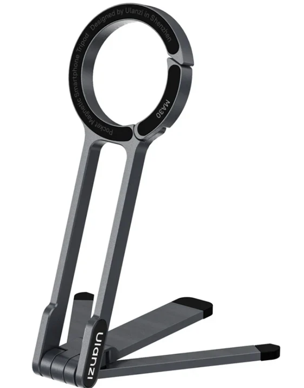El trípode para teléfonos móviles Ulanzi M077 MA30 (gris oscuro) es un soporte magnético plegable MagSafe que permite hacer fotos con el smartphone sin necesidad de usar las manos. Pesa solo 100 g, se fija con un mosquetón, admite los modos horizontal y vertical y, gracias a sus imanes dobles, se puede acoplar a accesorios como luces o filtros; es ideal para vlogueros y creadores que viajan.