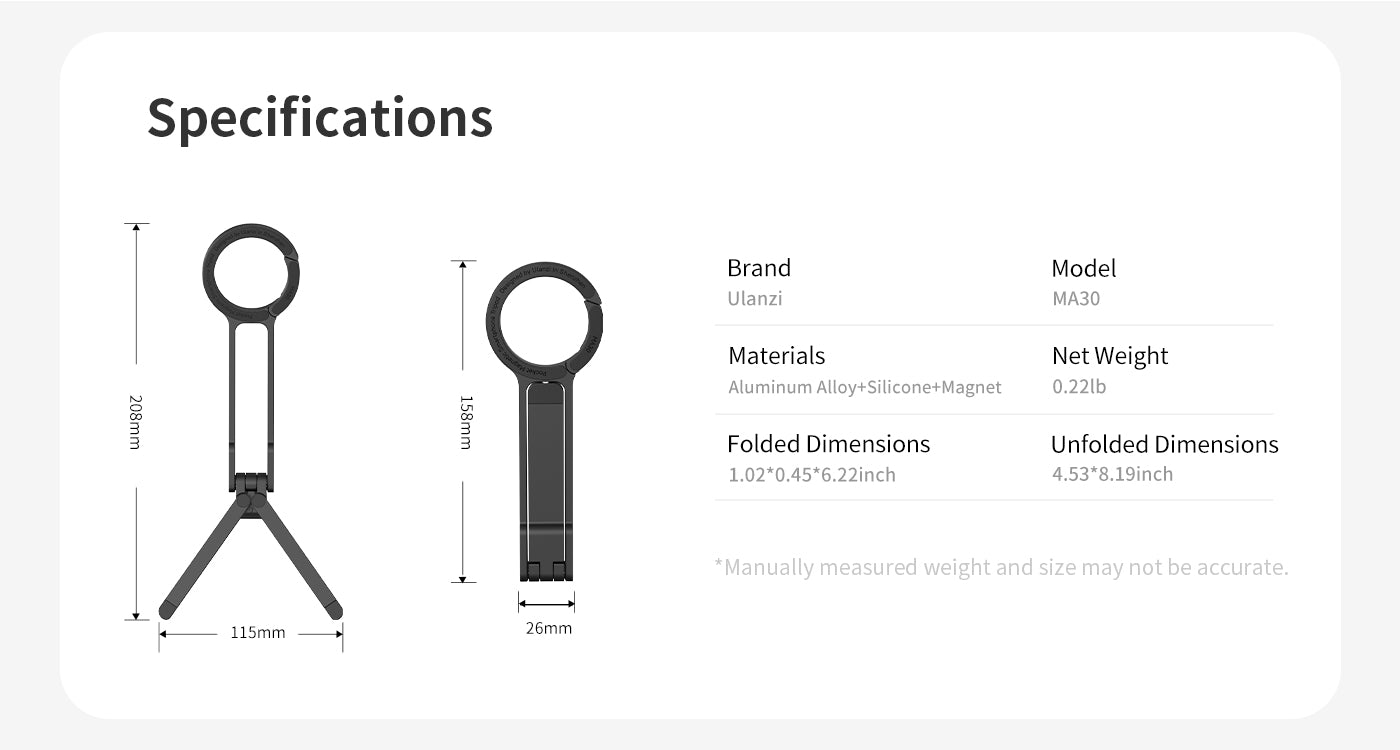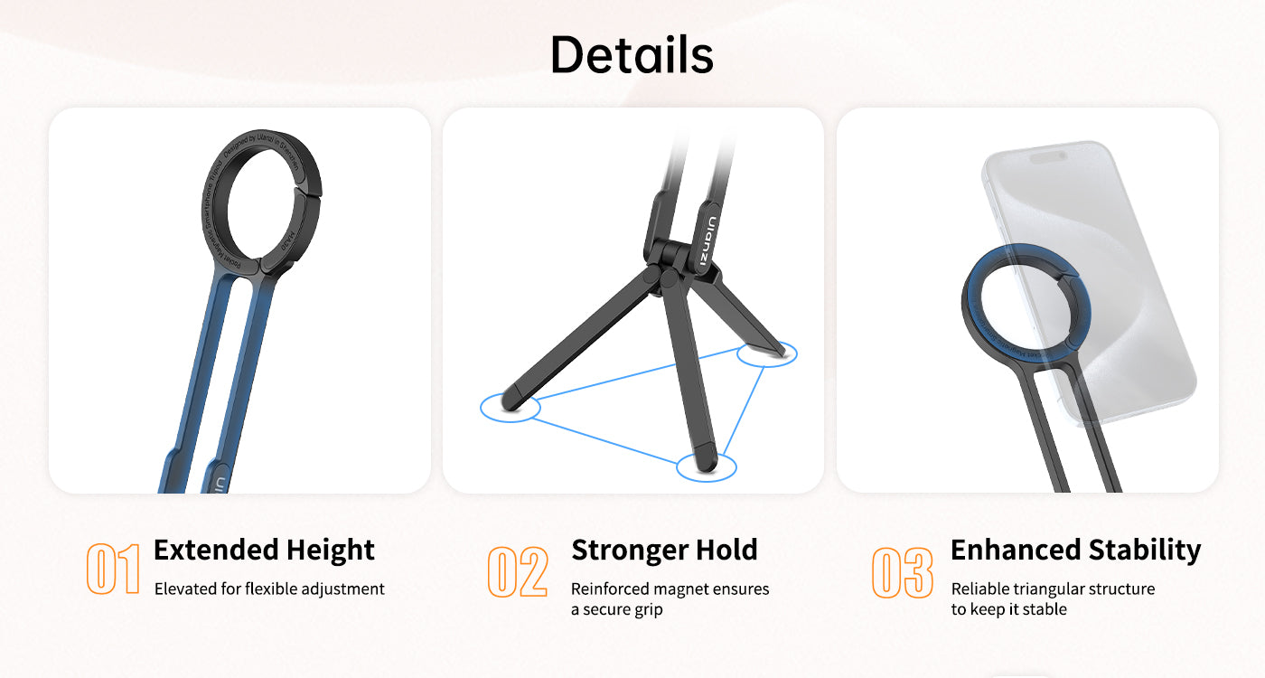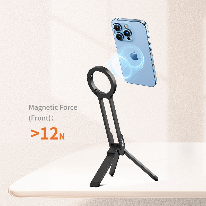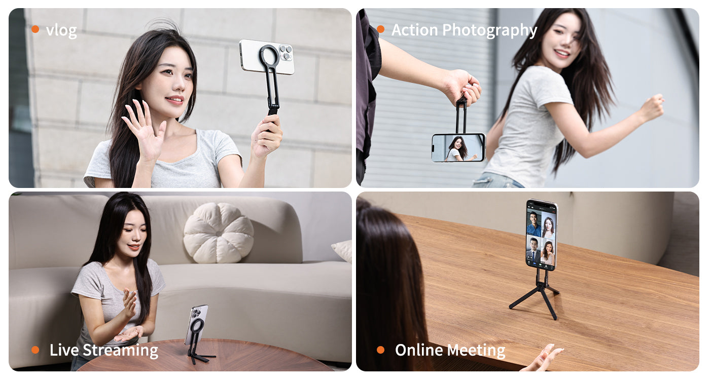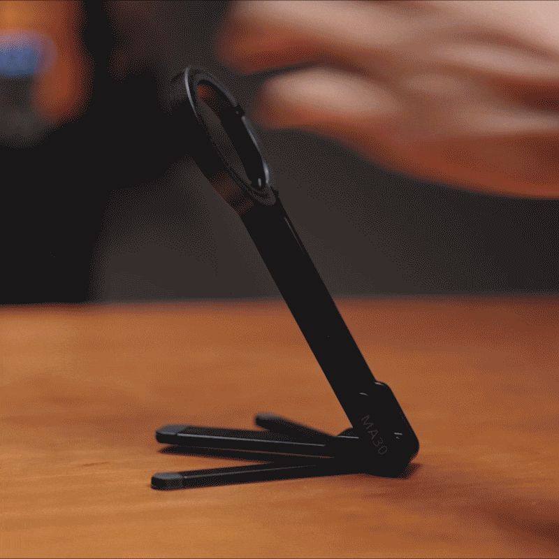 Trípode para móvil Ulanzi MA30 con mosquetón: compatible con MagSafe, ultraportátil e ideal para creadores. Cuelga, inclina, fotografía. El Ulanzi MA30 es un trípode para móvil con forma de mosquetón diseñado para creadores que necesitan una configuración rápida, ángulos flexibles y una gran portabilidad. Tanto si grabas un vlog mientras viajas como si filmas en espacios reducidos, este soporte compatible con MagSafe está listo para engancharse y empezar a grabar.