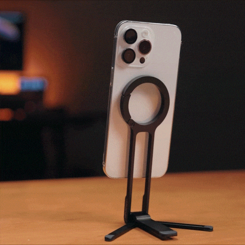 Fija tu teléfono con un solo movimiento y cambia fácilmente entre el modo horizontal y vertical con MagSafe.