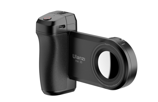 El MA35, diseñado para creadores, incluye un soporte para acoplar micrófonos o luces, una rosca interna de 1/4"-20 para trípodes o palos selfies y un espejo selfie integrado para un encuadre preciso. Este compacto y portátil grip recargable USB-C es compatible con dispositivos iOS y Android, lo que lo convierte en un potente accesorio móvil «todo en uno» para la fotografía.