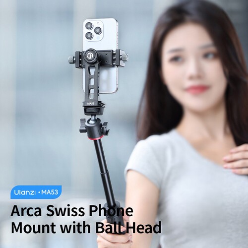 El soporte para teléfono Ulanzi MA53 Arca Swiss es un robusto soporte de aluminio para smartphones con una rótula integrada y una base de fijación rápida tipo Arca. Está diseñado para teléfonos de 2,4 a 3,7 pulgadas de ancho y ofrece una rotación fluida de 360°, posicionamiento en varios ángulos y amplias posibilidades de ampliación con accesorios,…