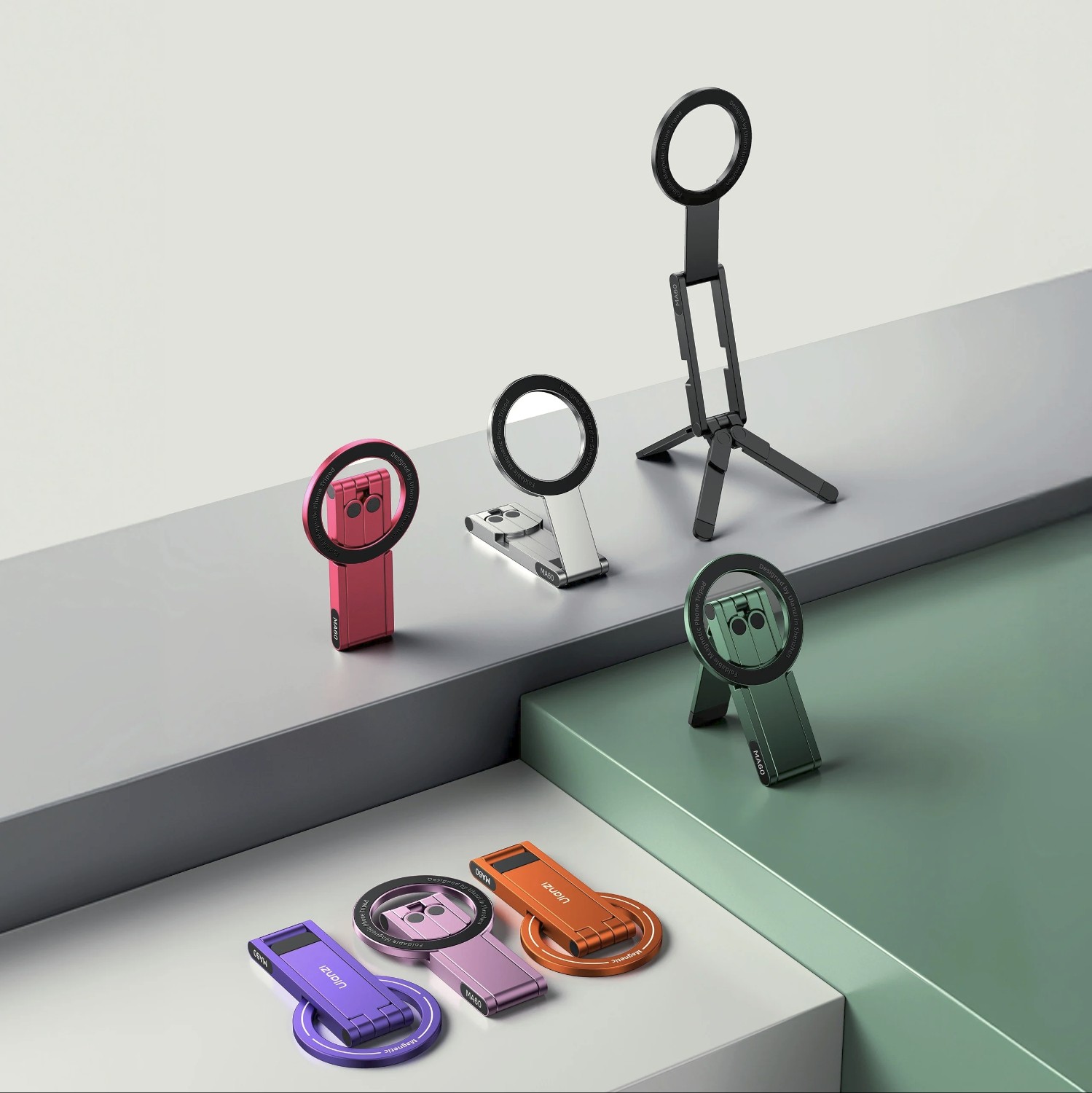 El Ulanzi MA60 es un elegante trípode magnético plegable para teléfonos móviles en color negro, ideal para creadores móviles que buscan versatilidad cuando están de viaje. Su potente imán de 14 N y su diseño reversible permiten tomar fotografías con estabilidad en los modos vertical, horizontal, a mano alzada, sobre una mesa o por encima de la cabeza.