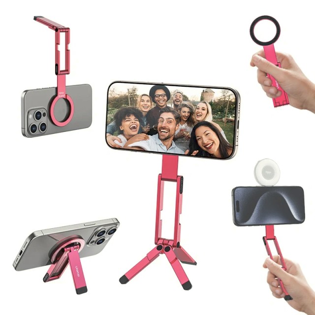 El Ulanzi MA60 es un trípode magnético compacto y plegable para el móvil, en color rosa, diseñado para grabaciones móviles versátiles. Gracias a su potente fijación magnética de 14 N y a su funcionalidad bidireccional, es ideal para grabaciones a mano alzada, sobre una mesa, en vertical u horizontal, perfecto para viajar, hacer vlogs o crear contenido sobre la marcha.