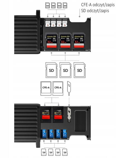 Compatible con tarjetas CFexpress tipo A, SD, microSD (TF) y SIM