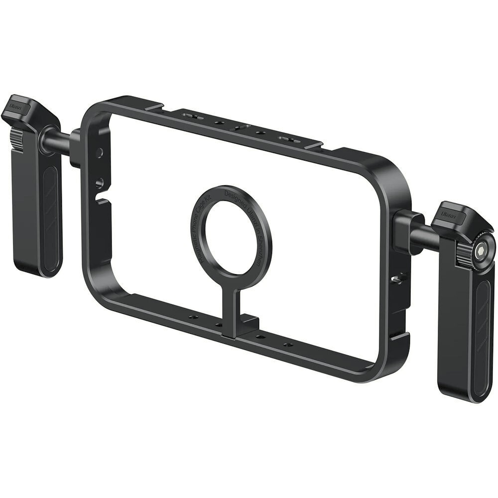 Mejora tus grabaciones de vídeo con el soporte magnético para smartphone Ulanzi MG-001, diseñado para smartphones y fundas compatibles con MagSafe. El soporte está fabricado en una resistente aleación de aluminio y silicona, es ligero pero resistente y ofrece un equipo profesional para retransmisiones en directo, vlogs o grabaciones de vídeo in situ. La jaula está equipada con un soporte magnético que sujeta tu teléfono mediante un tornillo de 1/4"-20 para un ajuste rápido, mientras que las asas laterales dobles garantizan un manejo cómodo y estable. Estas asas son desmontables y se pueden colocar en cualquiera de los ocho orificios de fijación, lo que permite cambiar fácilmente entre la orientación horizontal y vertical. Gracias a los cinco orificios roscados de 1/4"-20 y a los seis soportes para accesorios, puedes conectar micrófonos, luces LED u otros accesorios y mejorar así tu equipo creativo. El sistema magnético N52 del modelo MG-001 garantiza una sujeción segura del teléfono, lo que te da confianza durante las grabaciones dinámicas.