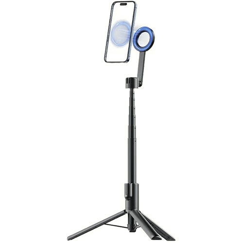 Captura fotos y vídeos con calidad profesional con el palo selfie magnético Ulanzi MG-003 Magnetic Phone Selfie Stick Tripod Pro (negro) V3. Este palo selfie de aluminio de 7 secciones, diseñado para smartphones y dispositivos compatibles con MagSafe, se puede extender de 42 cm a 136 cm, lo que permite ángulos de grabación flexibles. Su soporte compatible con MagSafe gira 360° y se inclina para permitir encuadres tanto verticales como horizontales, y además se pliega hasta quedar plano para facilitar su almacenamiento. El mando a distancia Bluetooth integrado, almacenado magnéticamente en el mango, permite tomar fotos de forma inalámbrica a una distancia de hasta 32 pies. Basta con pulsar el botón de liberación de la base y desplegar las patas del trípode para tomar fotos sobre una mesa o sin soporte. El MG-003 está fabricado en aluminio y plástico resistentes y soporta dispositivos de hasta 5 kg, lo que lo hace ideal para smartphones, soportes para smartphones y otros accesorios compatibles.