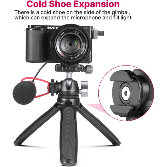El trípode de mesa Ulanzi MT-47 Mini Arca-Swiss Quick Shoe es una solución versátil y resistente para creadores de contenido, fotógrafos y videógrafos que valoran la rapidez y la flexibilidad. Este minitrípode está fabricado en aluminio y ofrece una rigidez excelente, a la vez que sigue siendo ligero, con un peso de tan solo 335 g. A pesar de su tamaño compacto, puede soportar dispositivos de hasta 2 kg, por lo que es ideal para cámaras de acción, cámaras compactas, cámaras sin espejo, cámaras web y pequeñas videocámaras. Con un adaptador opcional, también se pueden acoplar smartphones.