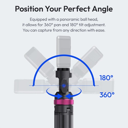El trípode de iluminación con fijación rápida Ulanzi MT-89 ofrece flexibilidad, portabilidad y resistencia para creadores de todos los niveles. Su barra extensible de 8 secciones permite alcanzar una altura de entre 38,5 cm y 208 cm, lo que permite su uso en diversos escenarios fotográficos, incluyendo configuraciones de mesa, de cuerpo entero y por encima de la cabeza. El paquete incluye un soporte de fijación rápida y una placa roscada de 1/4"-20, que garantizan una compatibilidad perfecta con cámaras, luces, smartphones y cámaras de acción. El trípode MT-89 está fabricado en una aleación de aluminio ligera y cuenta con una base ancha de 50 cm con patas antideslizantes, lo que le confiere una estabilidad excepcional y, al mismo tiempo, permite guardarlo en una mochila, por lo que es ideal para viajar. La rótula panorámica permite un giro de 360° y una inclinación de 180°, lo que facilita el posicionamiento preciso de tu equipo. Ya sea que estés retransmitiendo, haciendo vlogs o grabando contenido profesional, el MT-89 se adapta fácilmente a cualquier configuración.