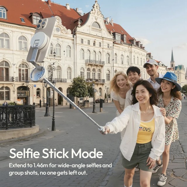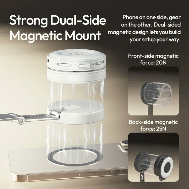Configúralo rápidamente y captura cada ángulo con el trípode automático para móvil Ulanzi MT85 (Magsafe, blanco). Su innovador diseño de cuatro patas con almohadillas antideslizantes garantiza un apoyo estable en cualquier superficie, mientras que el soporte magnético reversible compatible con MagSafe permite fijar de forma segura el móvil u otros accesorios. El trípode se puede extender hasta una altura máxima de 1,5 m (59,1") mediante un sistema de bloqueo giratorio de 7 secciones, lo que resulta ideal para tomas panorámicas, fotos de grupo o tomas desde una perspectiva aérea. El soporte para el teléfono, inclinable y giratorio en varios ejes, permite fotografiar fácilmente en modo vertical, horizontal y desde ángulos creativos. El controlador Bluetooth oculto tiene un alcance de hasta 10 m, por lo que puedes controlar las fotos y los vídeos sin tocar el teléfono. El MT85 pesa solo 385 g, por lo que es muy portátil para los creadores que viajan con frecuencia.