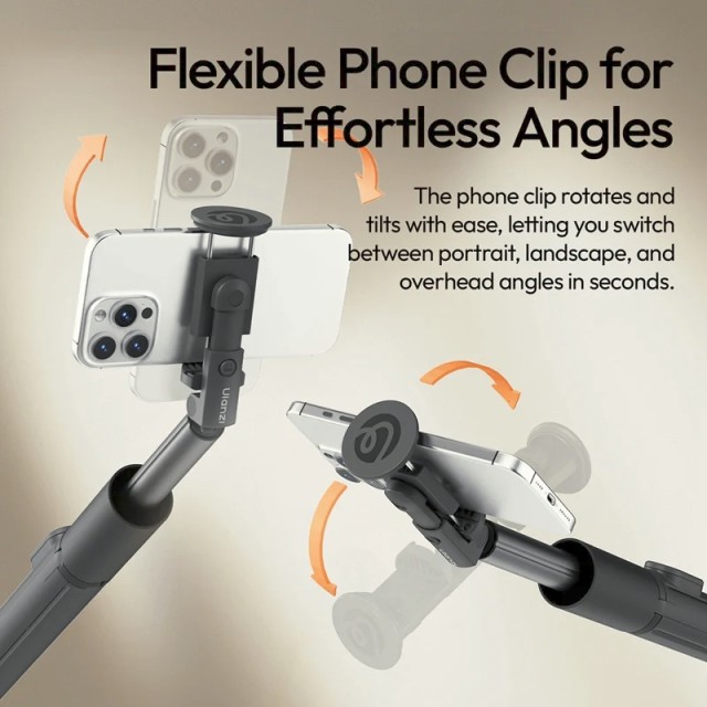 El Ulanzi MT86 es un trípode automático portátil diseñado para smartphones que combina un montaje rápido, ángulos flexibles y una gran portabilidad. Sus patas extensibles de 8 secciones soportan hasta 1 kg e incluyen una abrazadera giratoria e inclinable para el teléfono, un soporte para zapata y un mando a distancia por Bluetooth para fotografiar fácilmente en cualquier lugar.