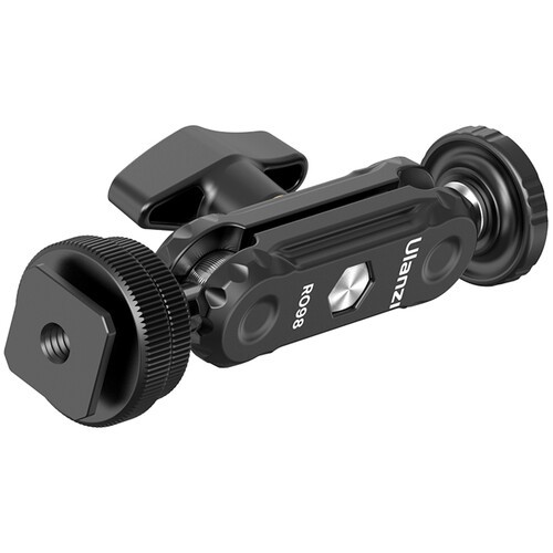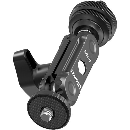 El R098 está equipado con una rótula doble que permite una inclinación de 180° y una rotación de 360°, lo que facilita el ajuste del ángulo ideal para cualquier configuración. La parte superior cuenta con una rosca estándar de 1/4"-20, mientras que la parte inferior incluye un soporte Cold Shoe con rosca integrada de 1/4"-20, lo que garantiza una amplia compatibilidad con cámaras y accesorios.