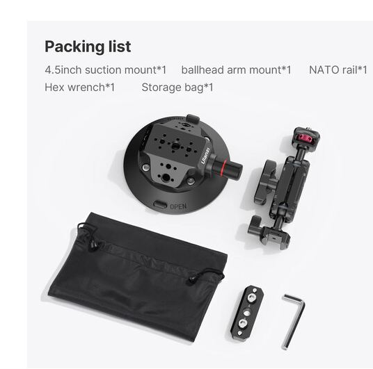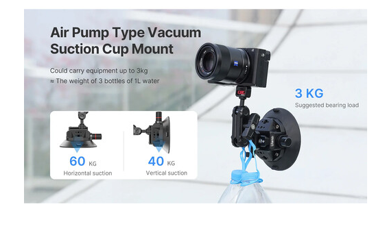 Una vez instalada, la ventosa proporciona una fuerza de sujeción vertical de hasta 88 lb y una fuerza de sujeción horizontal de hasta 132 lb, lo que permite fijar equipos de cámara de hasta 6,6 lb de peso. Esto la hace ideal para rigs de automóvil, tomas dinámicas, grabaciones time-lapse y rodajes en exteriores, donde la estabilidad es fundamental.