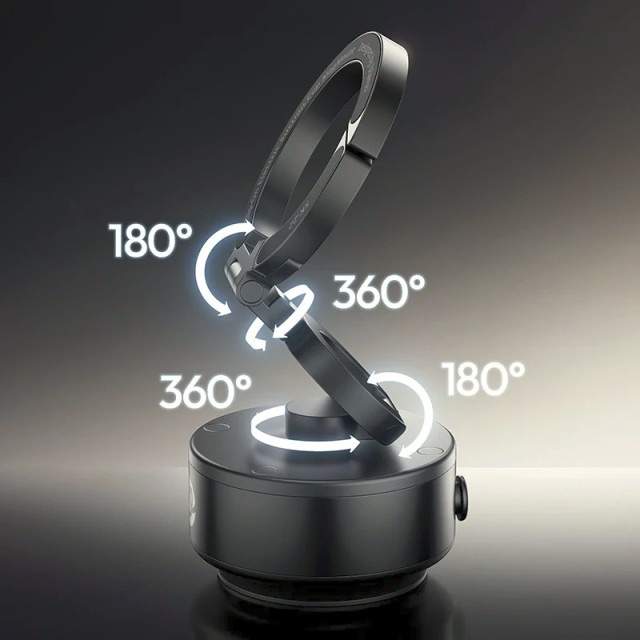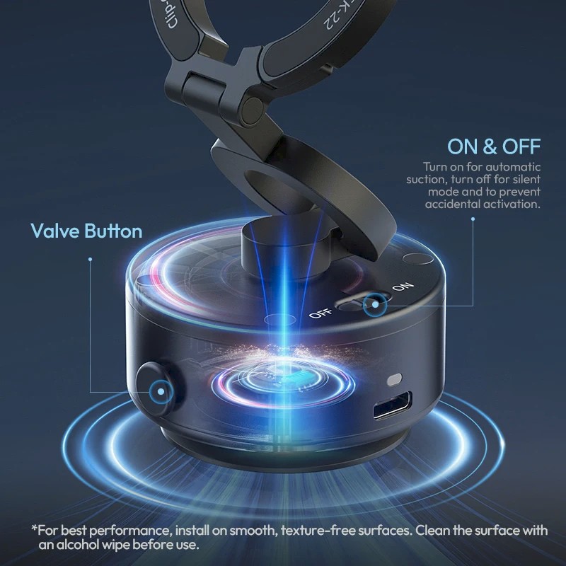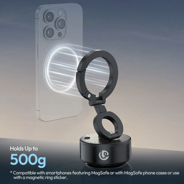 El soporte con ventosa eléctrica Ulanzi SK-22 ofrece una sujeción segura para smartphones con adaptador MagSafe o adaptador magnético, sin necesidad de sujetarlos con la mano. Su sistema de ventosa eléctrica crea y mantiene automáticamente una sujeción firme, mientras que su diseño plegable y giratorio permite diferentes ángulos de visión para vlogs, retransmisiones, navegación o vídeos educativos.
