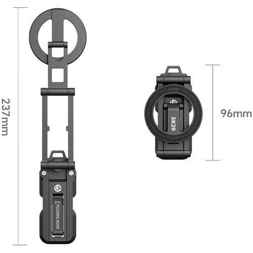 El soporte plegable para móvil Ulanzi SK29 (magnético) es un soporte compacto y versátil para smartphones con una pinza magnética MagSafe. Es plegable, portátil y cuenta con una base con rosca de 1/4"-20, por lo que es ideal para hacer vlogs, retransmitir en directo o ver vídeos sin necesidad de sujetar el móvil con las manos en cualquier lugar.