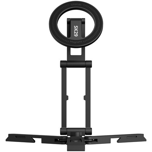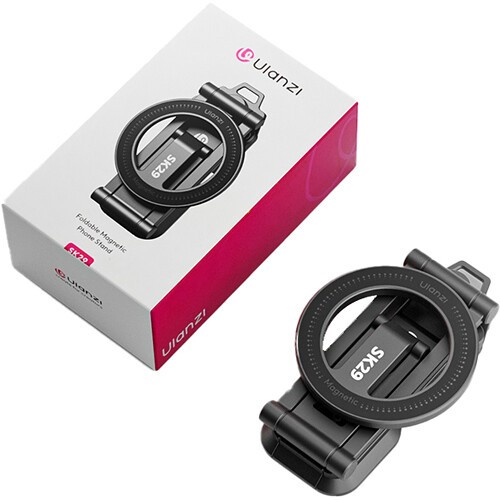 El soporte plegable para móvil Ulanzi SK29 es un soporte compacto y versátil para smartphones que funciona como minitrípode, asa o soporte de sujeción. Gracias a su inclinación y giro ajustables y a su base con rosca de 1/4"-20, es ideal para vlogs, tutoriales en línea o para ver el móvil sin necesidad de sujetarlo con las manos en cualquier lugar.
