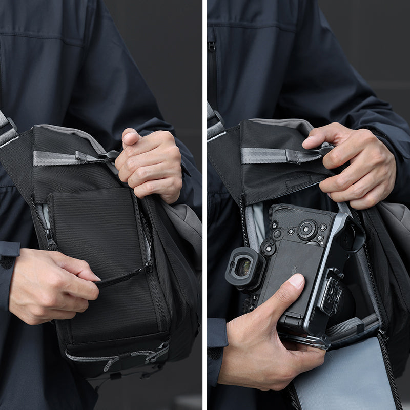 Mejora tu fotografía móvil con la bolsa para cámara Ulanzi TE88 Camera Shoulder Bag B167, una bolsa ligera con una capacidad de 15 litros diseñada para fotógrafos y videógrafos que viajan. Esta bolsa cuenta con un sistema de correas de 3 puntos para una estabilidad inigualable, cremalleras laterales para un acceso rápido y separadores modulares, lo que le permite adaptarse fácilmente tanto al uso diario como al equipo profesional. Ya sea que vayas al trabajo, montes en bicicleta o hagas fotos en la calle, la bolsa TE88 mantendrá tus objetos esenciales a salvo, bien organizados y fácilmente accesibles.