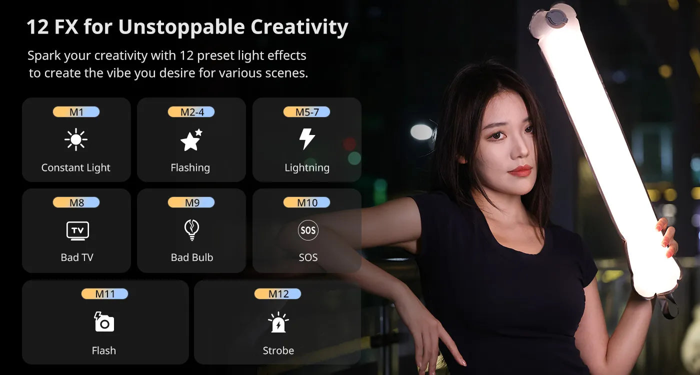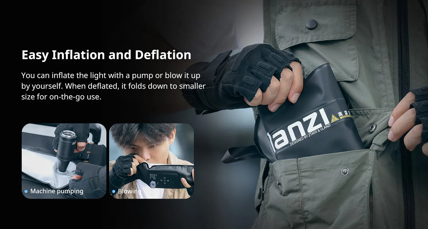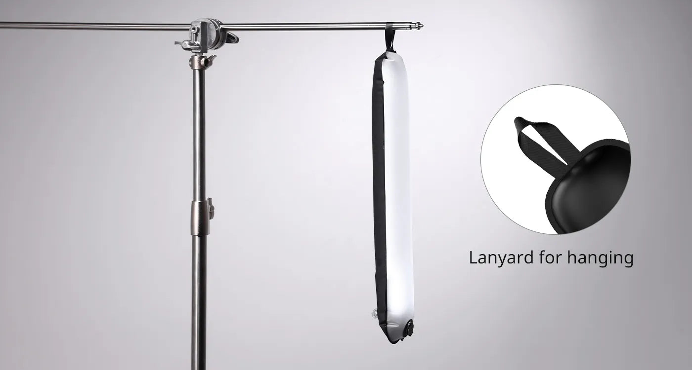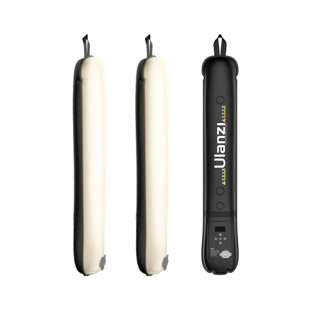 La lámpara tubular inflable portátil Ulanzi UA12/UA20 se infla y desinfla fácilmente y es ideal para diversas situaciones. Ajusta la temperatura de color entre 2700 K y 6500 K según tus necesidades a la hora de fotografiar. Da rienda suelta a tu creatividad con los 12 efectos de luz preestablecidos. El soporte magnético y el trípode de 1/4" garantizan una configuración versátil, y el cordón permite colgarlo fácilmente. Se alimenta con una batería de 18 Wh, admite carga rápida en 2 horas y ofrece 75 minutos (UA12) o 55 minutos (UA20) de funcionamiento a pleno brillo. Es ideal para usar en viajes, ya que se puede plegar de forma compacta una vez desinflado.